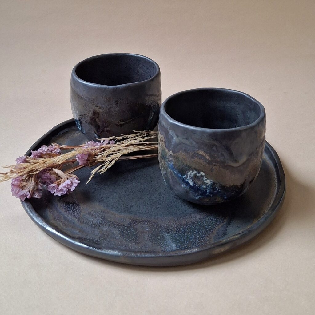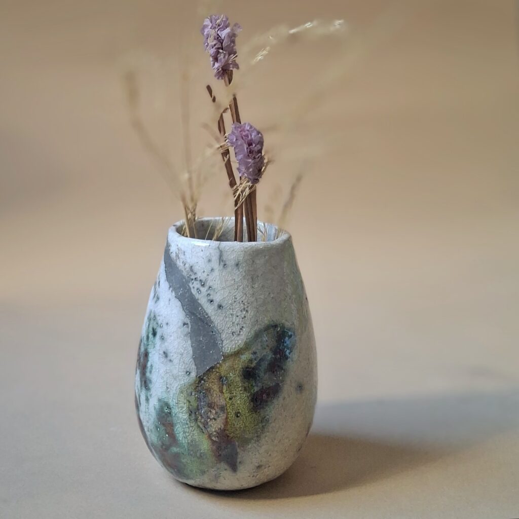Je vous propose des petites séries (tasses, bols, saladiers, mugs, soliflores….) et des pièces uniques, réalisées en grès et en raku. Le grès cuit à haute température (1280°C) permet une résistance et une facilité d’utilisation pour les objets du quotidien.